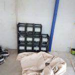 - Warehouse racking installation and electrical rough-in progressing during early fitout stage.