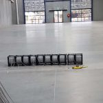 - High bay lighting fittings prepared and assembled on site prior to large scale installation.